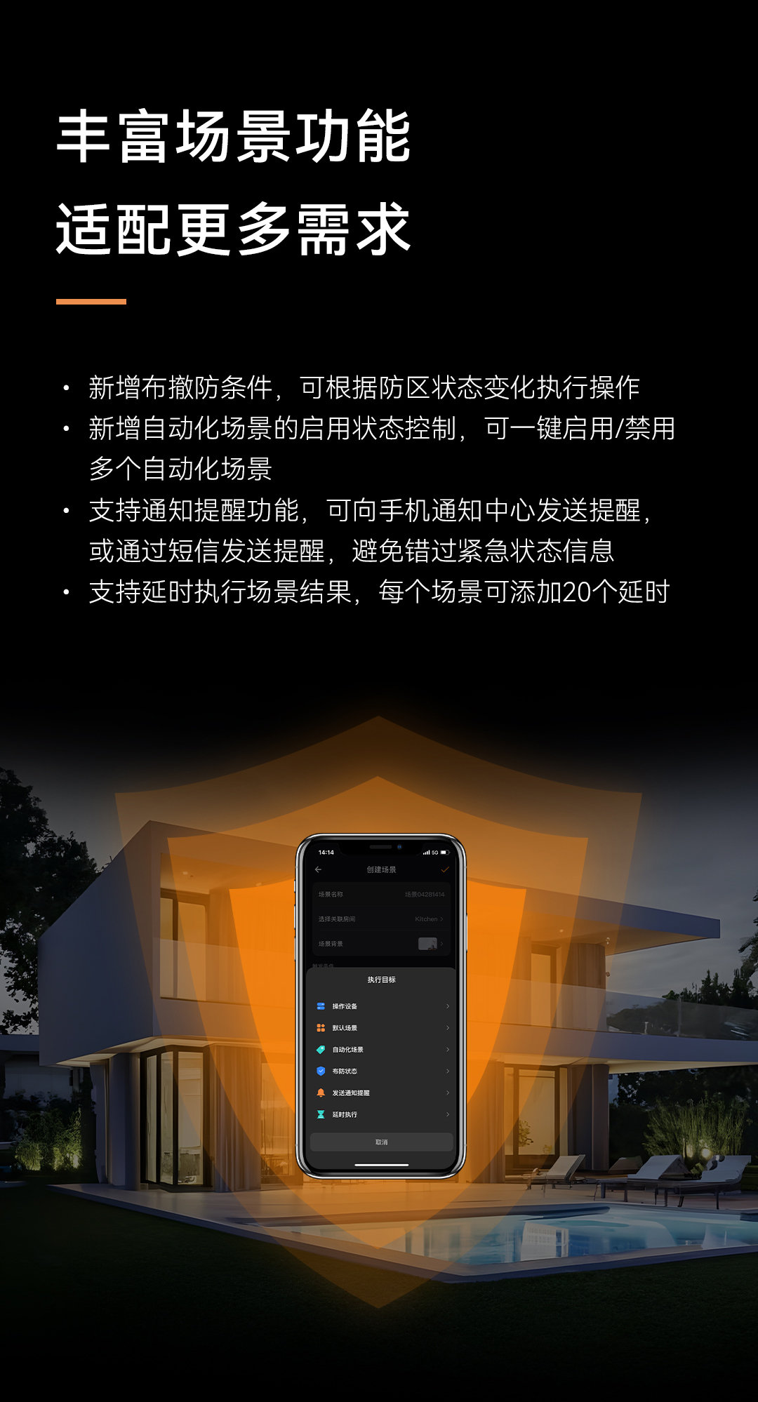 支持延時執(zhí)行場景結(jié)果,每個場景可添加20個延時