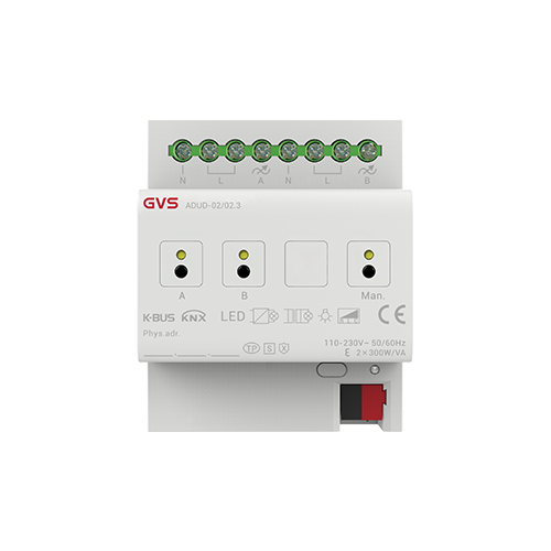 1/2/4 路通用調(diào)光執(zhí)行器(以下簡稱調(diào)光器)根據(jù)產(chǎn)品有 1/2/4 路輸出,可連接一些具有可調(diào)光性能的燈光設(shè)備(如白熾燈、鹵素燈、節(jié)能燈、LED 燈等),通過總線可以對這些燈光設(shè)備進行調(diào)光、場景預(yù)設(shè)、開關(guān)燈等操作,同時也支持 KNX 安全協(xié)議。采用導(dǎo)軌式安裝的調(diào)光器設(shè)計安裝在 35 毫米 DIN 導(dǎo)軌上的模數(shù)化設(shè)備,輸出端采用螺絲接線柱實現(xiàn)電氣連接。調(diào)光器的總線連接都是直接通過 KNX 接線端子連接,系統(tǒng)供電除總線外不需要額外的電源電壓。